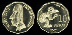 Monete in ordine crescente di Km km new 1 Peso (2007) Bonito fishkm new 5 Pesos (2007) Forceps fishkm new 10 Pesos (2007) Tangata Manu birdmankm new 50 Pesos (2007) Moray eelkm new 100 Pesos (2007) Vaka canoekm new 200 Pesos (2007) Hammerhead sharkkm new 500 Pesos (2007) Moai stone statueskm new 1000 Pesos (2008) Ancient Alphabet km new 2000 Pesos (2006) Ship - silver